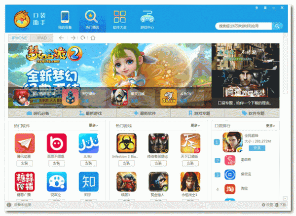 口袋助手是一款不需要苹果助手工具,口袋助手不需要手机越狱、不需要iTunes账号的一款手机助手工具。