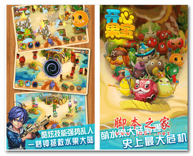 游戏以水果蔬菜为主题,Q版的画面风格,配合清新可爱的高清画质,轻松欢快的音乐旋律,多种华丽的技能和奇葩搞怪的配音,绝对颠覆你的感官!来吧,一起来拯救公主!