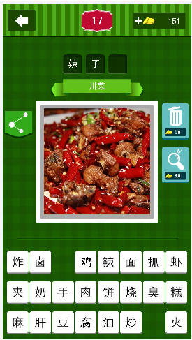 "吃货争霸"是一款益智休闲类的猜谜游戏。游戏玩法简单,根据美食图片,在备选字中找到正确答案,填写正确即为通关。游戏囊括天下美食,检验你的吃货指数,丰富你的美食见闻,绝对不容错过。疯狂猜图辨别美食,更可通过微信求助或分享好友,喜欢美食和猜谜游戏的玩家不妨下载试玩吧。 ——目前版本300道美食关挑战,更多美食随后奉上; 可通过微信求助或分享好友。我们很乐意听取您的意见或吐槽,做出用户更喜闻乐见的游戏。
